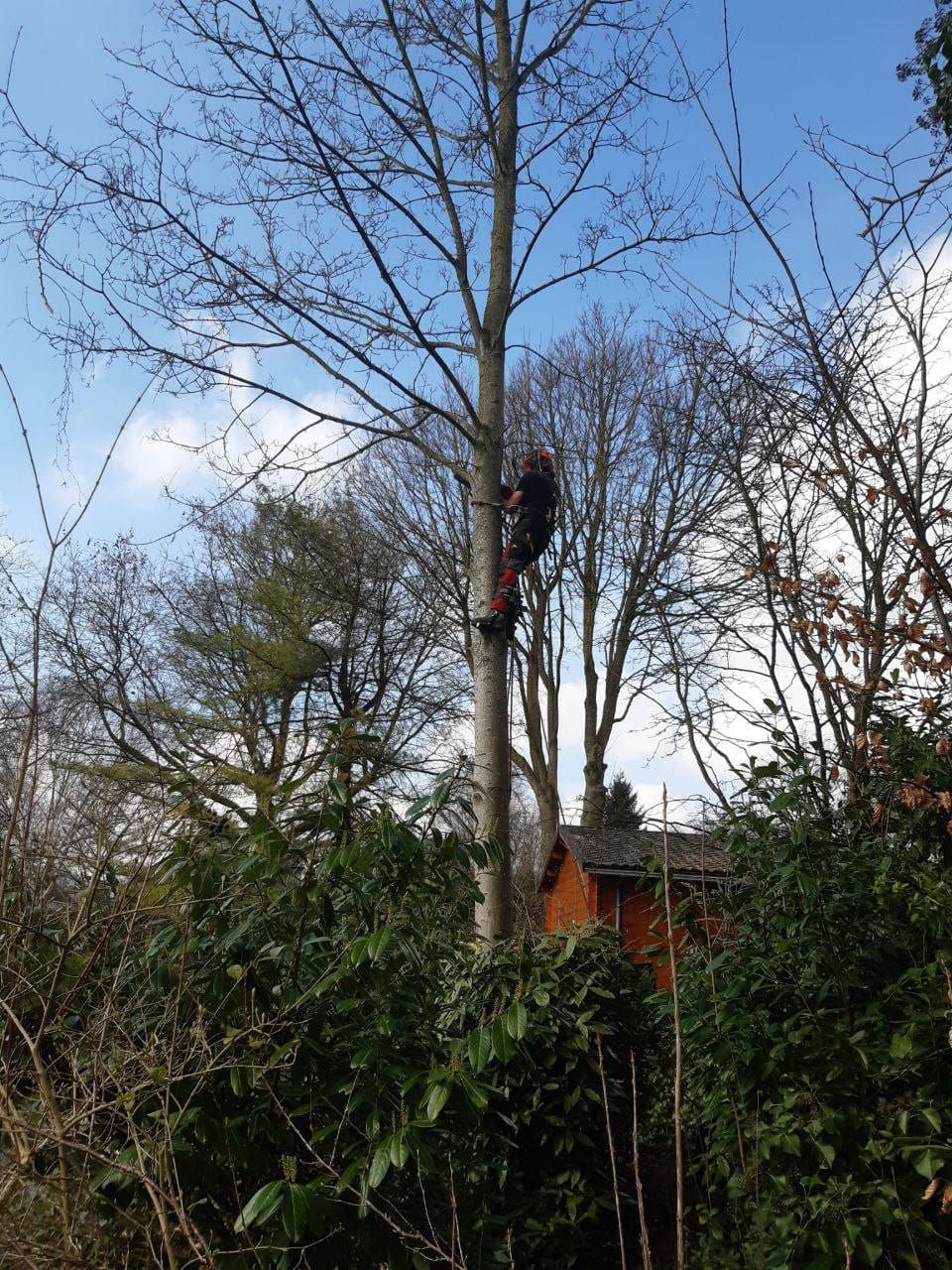 Ja, ons team is gespecialiseerd in het werken op moeilijk bereikbare plekken zoals tuinen met smalle doorgangen of hoge bomen dicht bij gebouwen of huizen.
